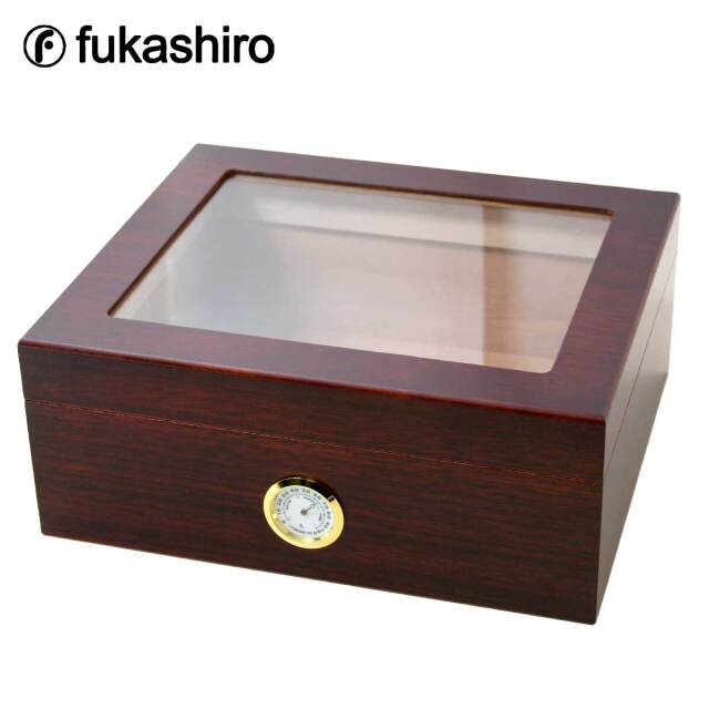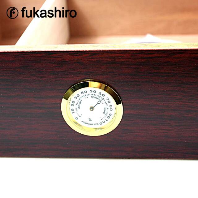 天板はアクリル板、湿度計はあらかじめ固定されており、蓋を開けずシガーの保管状況と湿度が確認できます。